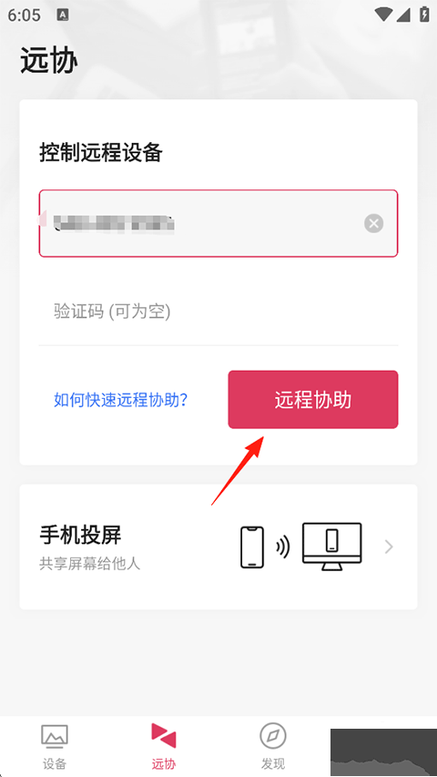 5、最后在远协页输入需要远程操控的设备验证码,点击远程协助即可。