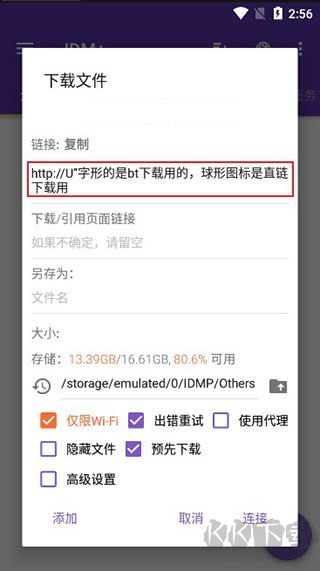 3、随后进入主窗口,U形标记为bt下载功能,圆球标识为直链获取用途。