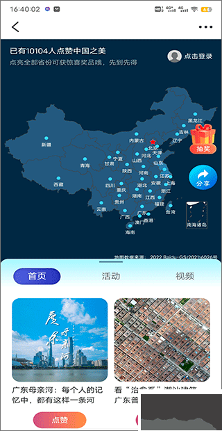 3、点击进入后我们即可参加活动,为中国的各个省份点赞,而且点亮全部省份还可以获得奖品哦。