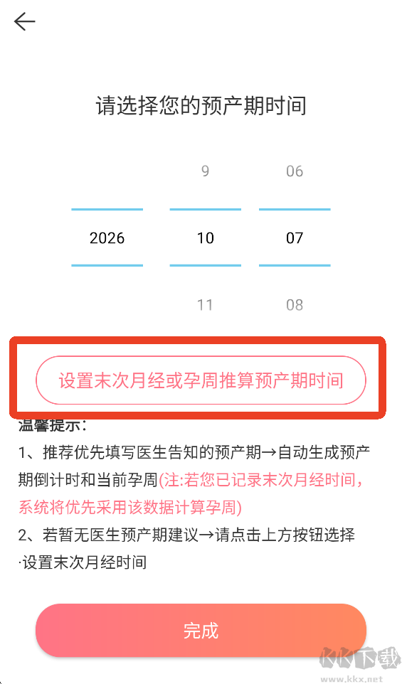 2、点击下方【设置末次月经或孕周期推算预产期时间】。
