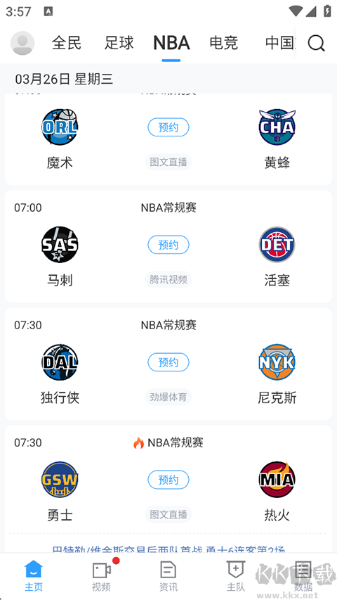 2、在NBA频道页面,下滑查看赛程列表,找到你想观看的比赛。