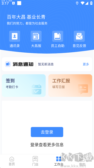4、如果你是部门员工的话工作台板块还可以进行签到和工作汇报等等