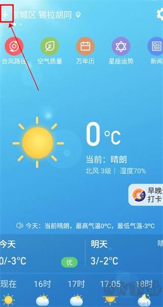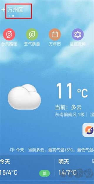 1、打开更云天气预报App至首页,在上方点击位置设置。