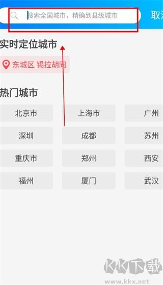 2、点击“添加城市”,点击搜索栏输入自己城市。