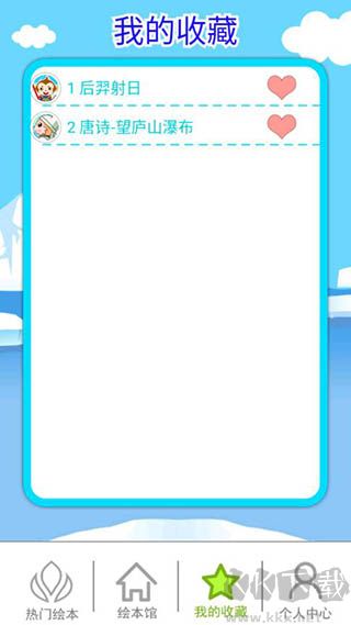 1、在观看绘本或者是唐诗宋词时,右上角有一个爱心,点击就收藏成功;