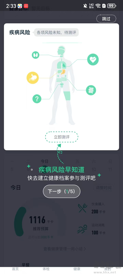 3、【健康评级】基于中华医学会、中国医师协会发布的数百份临床指南及权威学术文献,由AI智能输出精准健康风险评估,并附带改善建议,助力用户开启健康生活。