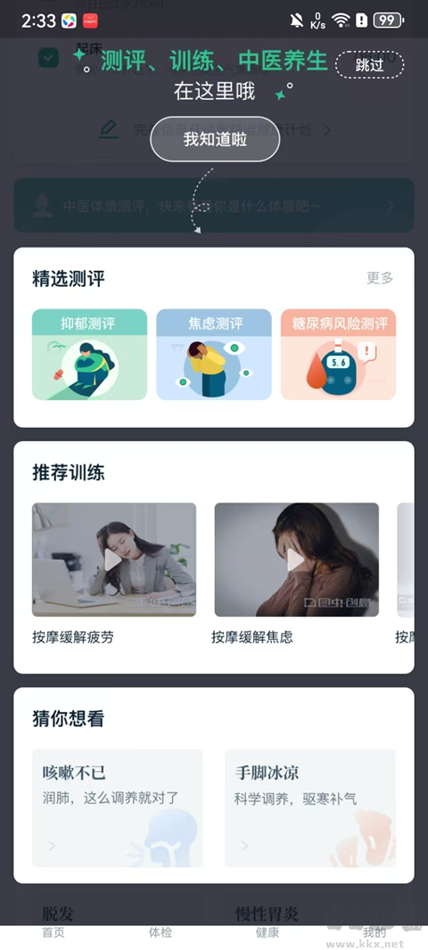 5、最后测评、训练、中医养生在精选测评板块哦。