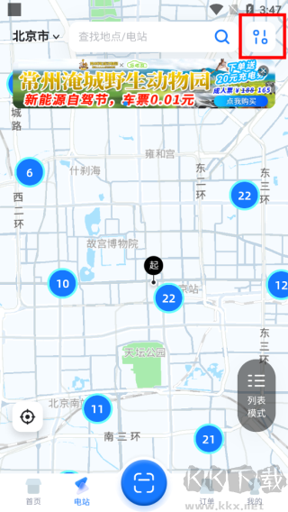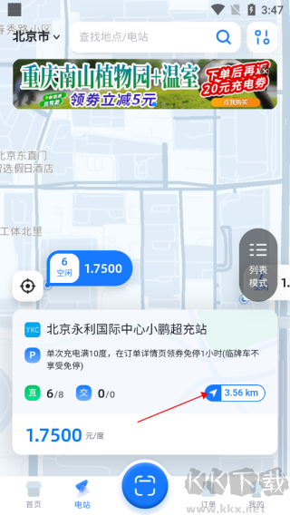 2、点击电站地图模式可以直观的查看到附近的充电桩
