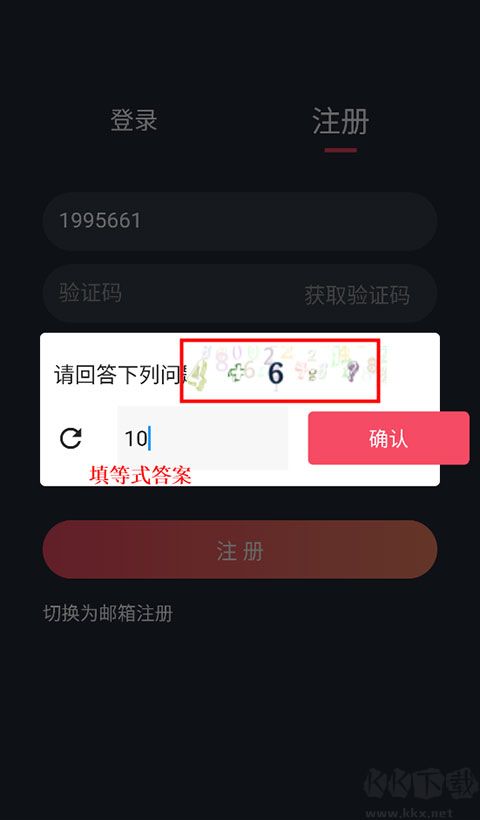 3、然后点击“获取验证码”,需要回答问题如下图,等式为4+6=?,验证码那里需要输入答案10。(遇到看不清楚的数字图案可以点击左侧的刷新按钮,重新获取等式)