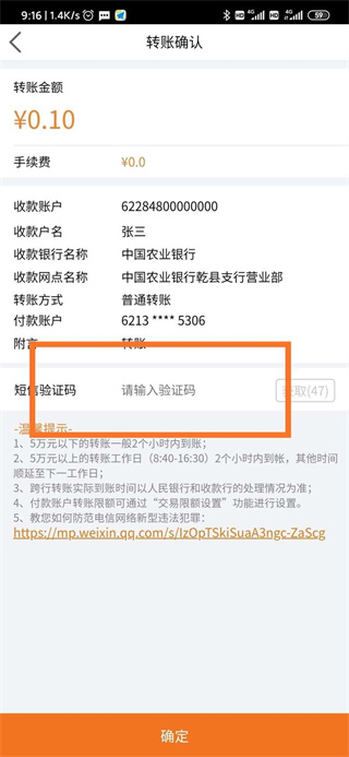 3、输入手机验证码(5万以上交易需开通手机Token交易时需要输入Token验证码)即可完成。